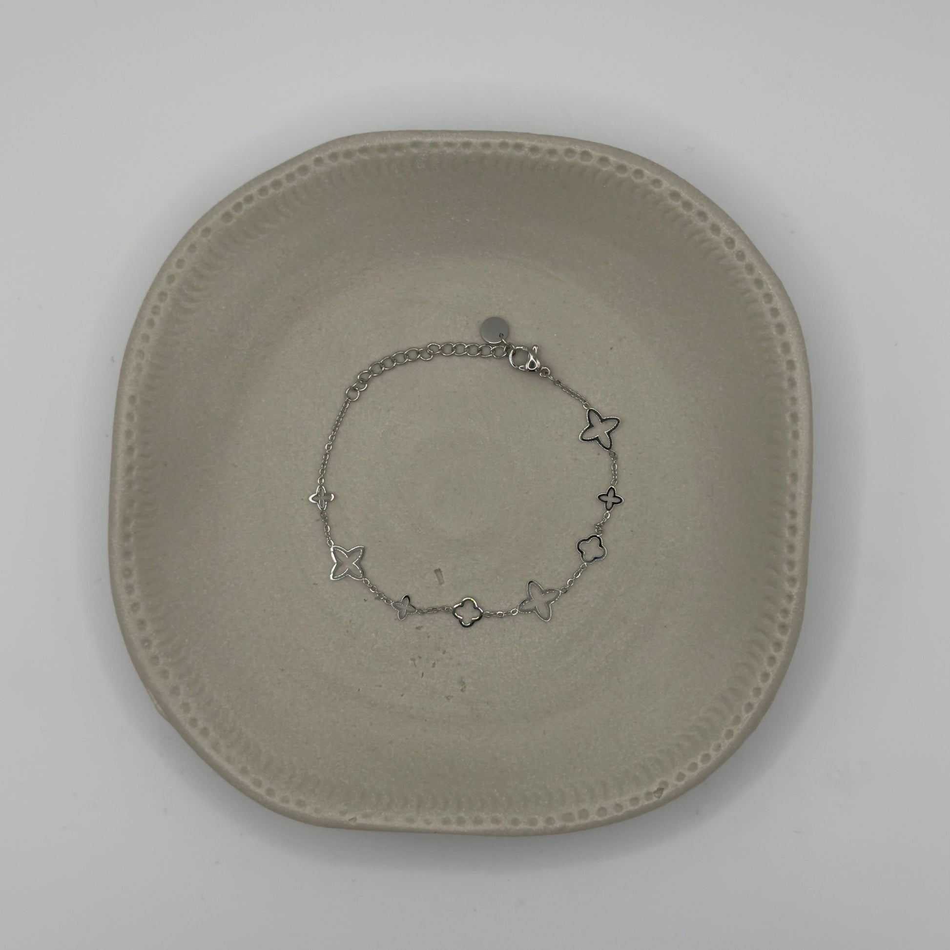 🌸 Verspielt & zart – dieses Armband kombiniert filigrane Blumen- und Kleeblatt-Elemente in Silber. Ein modernes Schmuckstück, das Leichtigkeit und Eleganz vereint.