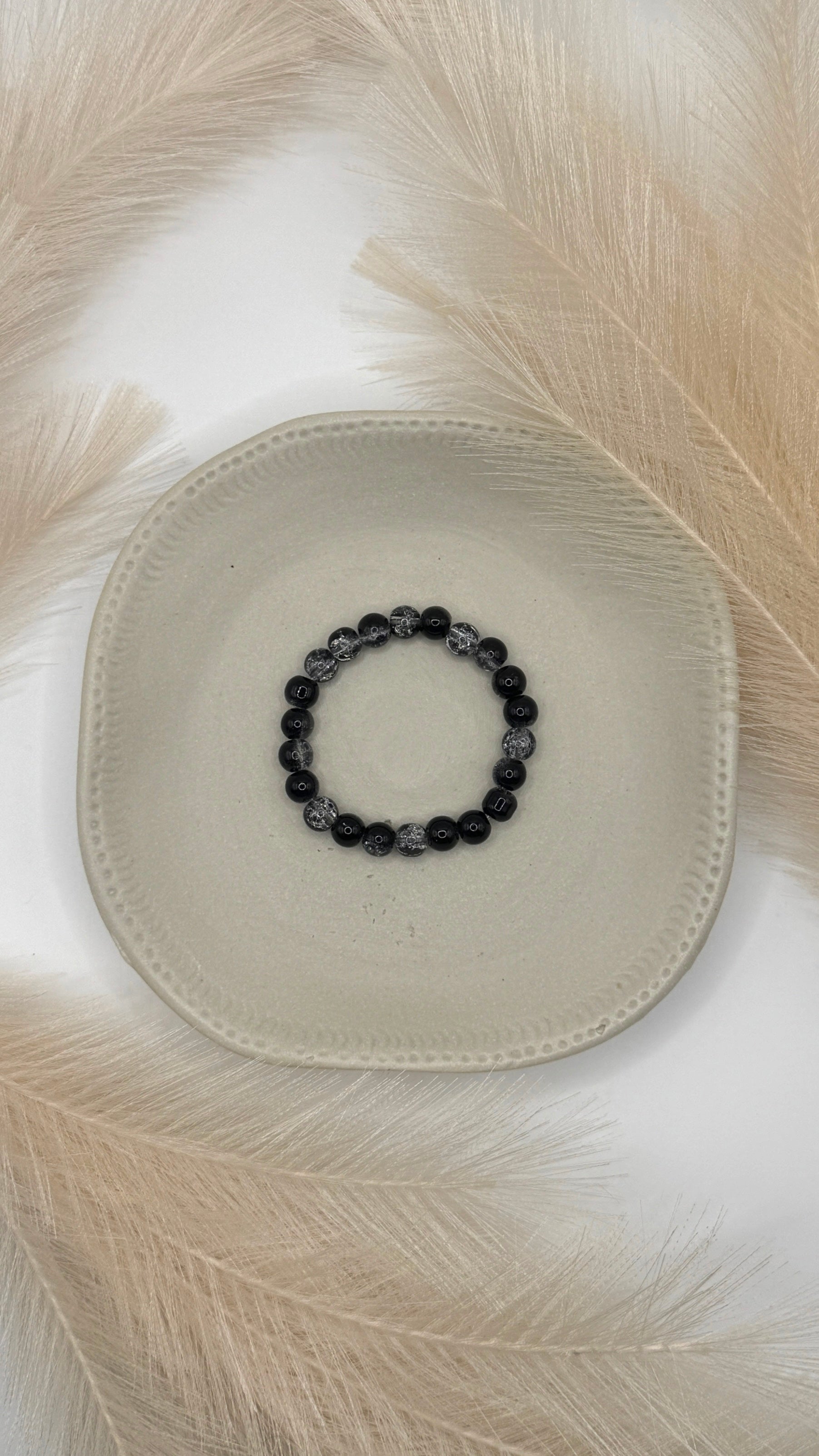 Eleganz in ihrer dunkelsten Form – schwarze und glasklare Perlen verschmelzen zu einem Statement voller Tiefe und Ruhe. ✨